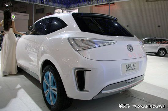哈弗E的外观为全铝合金封闭型承载式车身,其造型源于“海上霸王”———逆戟鲸,采用剪刀门的启闭方式,彰显年轻人群的狂野与时尚,应用碳纤维复合材料(G FR P),实现了“排放低碳化,车身高碳化”目标;PC玻璃的运用,使整车更具轻量化;时尚的全景天窗,让驾乘者均能全方位领略窗外美好景观。