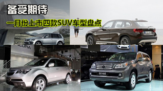 备受期待 一月份上市四款SUV车型盘点 车天下汽车网 发表于:2010-01-07 03:35 2009年已经过去,国内车市的汽车销量在创新高,中国汽车产业可谓是从危机中得到了机遇。进入2010年,相信各家厂商一定会为再次取得好的销量而努力,就在1月,新车数量已经达到10余款。随着中国SUV市场的日渐火爆 -