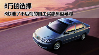 8万的选择 8款选了不后悔的自主实惠车型导购 车天下汽车网 发表于:2009-12-11 03:19 随着国内乘用车市场的发展壮大,城市交通压力也逐步加强,面对拥挤的城市交通路况,需要频繁换挡的手动挡车型给消费者带来很多的苦恼。今年下半年开始,国内很多自主品牌汽车厂商开始推出低价位自动挡车型 -