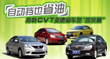 自动挡也省油 搭载CVT变速箱车型“四宗最” 车天下汽车网 发表于:2012-12-13 06:56 舒适性和燃油经济性是很多汽车消费者最为关注的两个因素,配备CVT变速箱的车型对这两个需求有着得天独厚的优势。 -