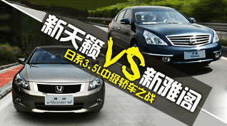 新一代天籁VS新雅阁 日系3.5L中级轿车之战 车天下汽车网 发表于:2009-03-17 09:55 东风日产的中级轿车新一代天籁以19.08-33.28万的价格正式上市。。新一代天籁是在全新的D平台基础上开发的全新车型,完全脱离了上一代天籁车型的影子,在北京国际车展上一经亮相时就立刻得到了中国消费者的关注。新天籁与前一阵广州本田推出的第八代雅阁同属于B级轿车,同时两款车系的顶配车型均配备了3.5升的发动机。 -