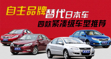 替代日本车 四款自主品牌紧凑级车型推荐 车天下汽车网 发表于:2012-08-30 10:03 随着钓鱼岛事件的升级,国内再次掀起了抵制日货的热潮,尤其是日本车更是众矢之的。很多消费者买车明确提出:不买日本车。今天,小编就为不喜欢日本车的你推荐几款可以叫板日系车的自主品牌车型。其实除了售价上的优势,在最近这两三年里,自主品牌的进步是有目共睹的。特别是在紧凑型车领域,自主品牌的车型越来越多,技术做工也进步很大,不仅是在技术上进行了更新和强化,就连造型设计也越来越国际范儿,自主品牌正在悄然崛起。取代日本车,不是因为热血愤青,仅仅是因为国货当自强! -