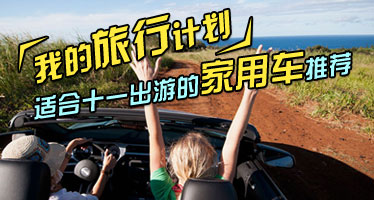 我的旅行计划 适合十一出游的家用车推荐 车天下汽车网 发表于:2012-09-04 08:52 还有一个月即将迎来激动人心的十一小长假了,相信很多朋友已经开始精心安排自己的度假计划。秋高气爽,如果可以拉上全家人一起去郊游那将是多么惬意的事情。下面,小编就为大家介绍几款适合十一出游的家用车。 -