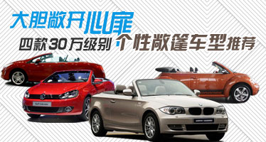 大胆敞开心扉 四款30万级别个性敞篷车型推荐 车天下汽车网 发表于:2012-09-05 02:13 虽说是刚进入9月,但人们早已按耐不住激动的心情开始把“十一”假期的出游计划提上日程。倘若有一辆敞篷小跑载我们出行,想必一定很拉风,打开车顶,敞开心扉,尽情享受大自然的那份美好。今天,我们就先来看看市场中30万级别的热门个性敞篷车型有哪些? -