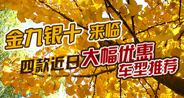 “金九银十”来临 四款近日大幅优惠车型推荐 车天下汽车网 发表于:2012-09-11 07:03 随着“金九”的来临,蛰伏许久的车市开始躁动起来。为了冲量弥补上半年的下滑,经销商纷纷打出“低价,高配”的大幅优惠广告,亏本卖车重出江湖。今年低迷的车市能否因“金九银十”的到来而火爆起来呢? -