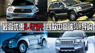 最高优惠2.6万元 四款中高端SUV导购 车天下汽车网 发表于:2008-10-29 04:30 进入秋冬季节,天气和气温的变化使得交通和路面状况变得愈发复杂,完全具备征服各种恶略条件的中高端SUV是应对这种环境的最佳车型。虽然受大排量消费税影响,其价格普遍上涨,但对高端的消费人群来讲品质和性能是最主要的。丰田汉兰达、吉普大切诺基、三菱帕杰罗V97、路虎神行者2 代都是秋冬季出行的最好选择。 -