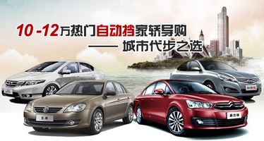 10-12万热门自动挡家轿导购 城市代步之选 车天下汽车网 发表于:2012-07-11 06:00 不少人在自己选车时都会挑花眼,可谓外形、品牌、质量、空间、动力样样操心,最近也常有朋友问起,10万元多一点买什么车用于上下班代步比较好?那么,下面小编为大家推荐几款相对热门的、性价比高的车型。其实作为日常代步,我们的要求不外乎:外形上时尚大气、不损车主面子、配置丰富且实用、操控方便安全、满足城市驾驶的动力,而作为工薪阶层日常代步,10-12万足矣。