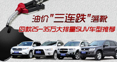 油价“三连跌”落靴 25-35万大排量SUV车型推荐 车天下汽车网 发表于:2012-07-12 07:08 国家发改委昨日(7月11日)零时起,将汽油和柴油价格每吨分别降低420元和400元,全国90#汽油和0#柴油价格平均每升分别降低0.31元和0.34元。这次降价是继5月10日和6月9日之后中国今年第三次下调国内汽柴油价格,也是2008年12月实施现行成品油定价机制以来国内油价首现“三连跌”。 -
