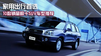 家用出行首选 10款销量前十SUV车型推荐 车天下汽车网 发表于:2010-05-24 08:30 据可靠数据显示,2010年3月份SUV上排量前10名为:哈弗H3、一汽丰田RAV4、东风本田CR-V、现代新胜达、圣达菲、斯巴鲁森林人、狮跑、途胜、丰田普拉多,编辑在这里为大家点评一下2010年3月份上牌量前10名的SUV -