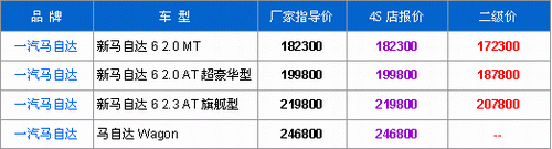 2. 目前4S店报价不优惠,仅赠送全车保险及基本装饰,二级经销商最高优惠1.2万(报价 参数 图片 论坛),不过这是一条龙服务的价格,如果单提裸车的话价格要高1000元左右。马自达Wagon目前还没有优惠。