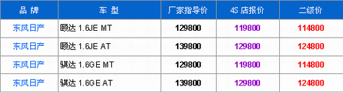 本周骐达(报价 参数 图片 论坛)/颐达价格保持稳定,二级经销商的报价优惠15000(报价 参数 图片 论坛),4S店的报价仍统一为优惠1万元,具体市场行情如下: