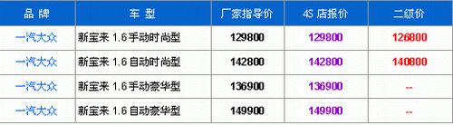 2. 新宝来4S店价格目前没有优惠,但可赠送2000(报价 参数 图片 论坛)装饰。二级经销商新宝来时尚型最高可优惠3000元,豪华型目前二级经销商没有现车。