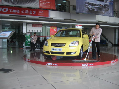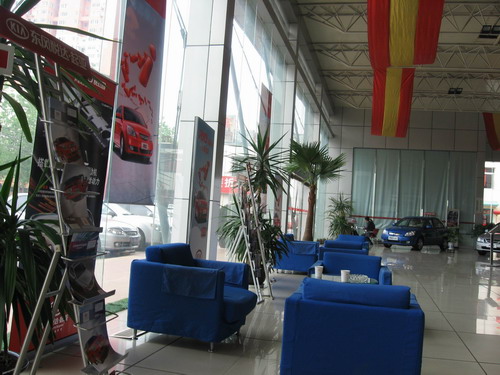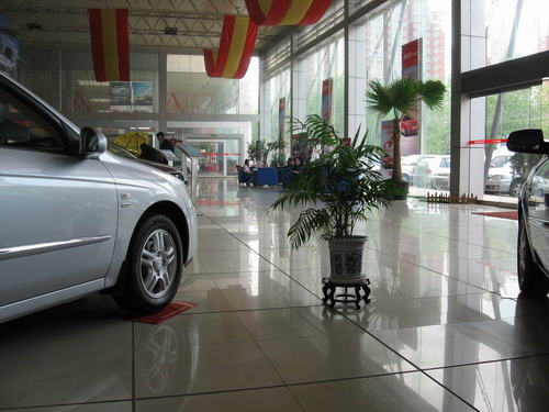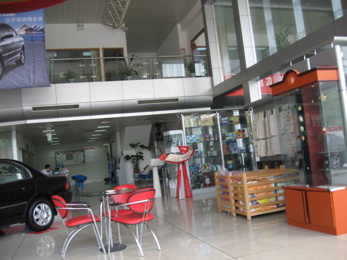 由于总店位置距离市区不远,再加上五一黄金周购车高峰的原因,尽管今天不是周末,但是前来销售大厅看车的人还是特别多,约有十几位消费者围在畅销车型赛拉图(报价 参数 图片 论坛)、千里马等车型旁边,几位销售人员正在给他们介绍车型情况。大厅的右侧,维修服务接待处前也围着七八位前来修车的车主。