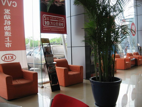 销售洽谈处的椅子摆放的整整齐齐,烟灰缸也是一尘不染,可以看出中德店在这方面还是下了一些功夫的。展厅内的车比较多,但很整齐,这里不仅摆放着东风悦达起亚的车型,还销售韩国原装进口狮跑(报价 参数 图片 论坛)、索兰托(报价 参数 图片 论坛)等车型,这在其他的4S店可不多见。