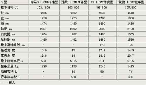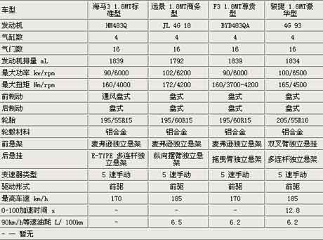1.8L四小龙 海马3、远景、骏捷、F3买谁