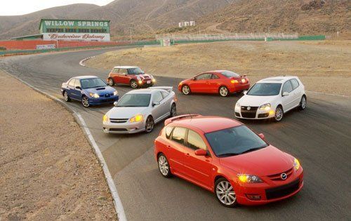 而本次的对比测试也是在这个前提下进行的——小型、运动、即便宜又实用。为此我们看到这些美国同行找来了一系列在美国广受好评的个人运动型车,它们是雪佛兰Cobalt SS增压版, 本田Civic Si, 2007款Mazda speed3, Mini Cooper S, 斯巴鲁WRX TR以及大众高尔夫(报价 参数 图片 论坛)GTI。这些运动型车绝对让我们垂涎三尺啊!而这些车在美国都属于花钱不多,但是性能突出的车型。