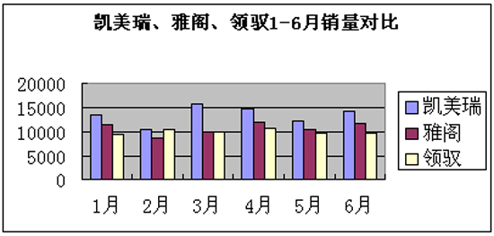 在迈腾上市前,中高级车市场中,能与领驭对阵的强劲对手只有凯美瑞和雅阁,今年1-6月销量对比可见(上表),凯美瑞依然保持明显优势,前三个月领驭与雅阁销量相当,后期雅阁的大幅降价拉开了与领驭的销量,如果迈腾上市再加入其中,领驭的压力非同小可。对于领驭来说,降价是很无奈的选择,但也是最有效的决策。