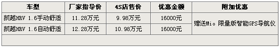 凯越HRV买车送GPS 4S店促销最低9.98万