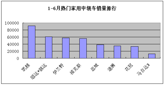 中汽协产销显示,今年上半年乘用车共销售255万辆,同比增长率达到26%,其中,中级车更是强劲的增长点。这一级别的车型,价格上消费者容易接受,配置齐全,外形也够大气,动力性足够,因此中级车成为消费者选择的主要车型,中级车市场也是目前国内车市竞争最激烈的阵地。