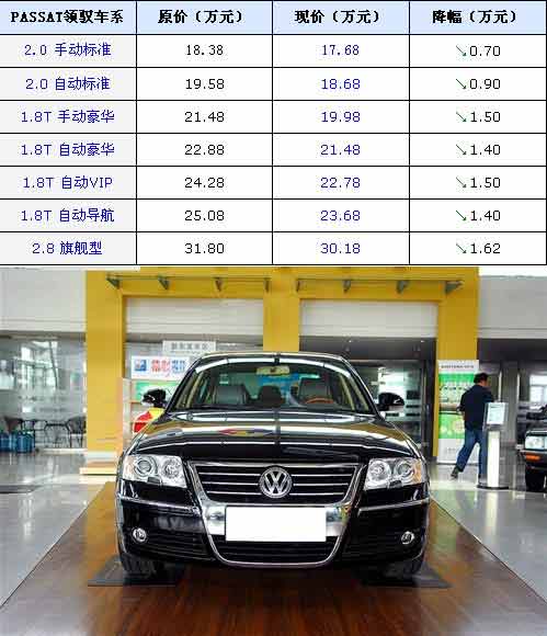 本周,借助奥运一周年倒计时即将拉开序幕的契机,上海大众正式宣布启动“领驭奥运计划”。在这个计划中,上海大众适时对PASSAT领驭系列产品进行了价格体系的重大调整。其中,2.0系列突破18万元价格底限,手动标准型仅售17.68万元;1.8T系列四款车型则各有1.4~1.5万元的降幅,最低售价下探至20万元以内;而2.8 V6手自一体旗舰型本次调整力度最大,降幅高达1.62万元。