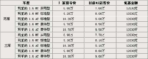 利亚纳热门车型