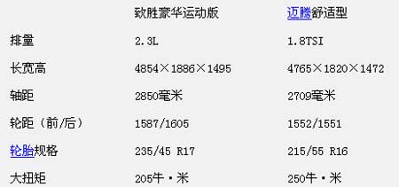 致胜的大灯是带大灯清洗的氙气大灯,迈腾是卤素大灯,不带清洗。致胜的HMI有两个较大的屏幕显示信息,且比迈腾的屏幕大。致胜有智能无钥匙进入系统和Ford Power动力启动按钮,迈腾是遥控开门,插入按键式启动。致胜配有车载蓝牙免提系统,迈腾没有。致胜是带七寸触摸屏单碟DVD音响系统+MP3接口,迈腾是6+1多碟CD带MP3。致胜有空气大包围和扰流翼,迈腾无。致胜是无盖式加油系统,迈腾不是。迈腾的制动系统有自动除水功能,致胜没有。迈腾的转向系统是先进的电动随速助力转向系统EPS,致胜是传统的液压动力辅助转向系统。迈腾全车玻璃是绿色隔热玻璃,致胜是普通浅色玻璃。迈腾的雨刷器控制是智能雨感式,致胜不是。迈腾的前排中央扶手高度可调,致胜不能。相关文章链接:【老款让路新款市场 致胜最高降3.68万