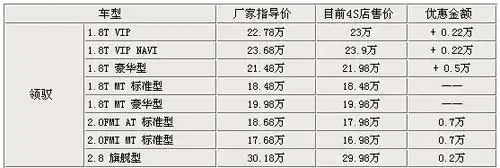 上海大众的帕萨特车型,一直是中国中高级车的代名词之一,它的名气可谓妇孺皆知。而之后帕萨特?领驭车型的推出,使帕萨特的名气得以继续的延续。凭借者良好的口碑,帕萨特?领驭在2007年的岁末出现之前很少有的部分车型加价销售的情况,由此可见帕萨特?领驭名气以及其独特的感召力。除了少数的加价车型,帕萨特领驭还是有一定的优惠幅度的,最大现金优惠金额为0.7万元。 相关文章链接:【领驭/锐志(报价 参数 图片 论坛)/迈腾(报价 参数 图片 论坛)!我的选车之路