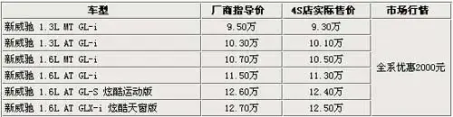 2008年2月28日,作为一汽丰田在华投产的首款车型,威驰在经改款换代后正式在国内上市销售。虽然新VIOS威驰在上市初期因供求紧张的关系,曾出现过购车需先行预订的状况,但随着各家4S店车源供应陆续趋于平稳后,新VIOS威驰近期在北京地区的售价已出现了2000元(报价 参数 图片 论坛)的现金优惠。