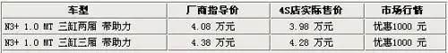 3月28日,天津一汽在夏利N3车型的基础上推出了N3+车型,并且在全国范围内正式上市。而在夏利N3+上市之前,各个地区已经N3+在销售,由于受国Ⅳ标准影响夏利N3+,在北京地区只有两款车型在售。虽然上市时间很短,但记者走访北京地区的4S店了解到,夏利N3+在部分4S店内已经有了1000元的优惠。