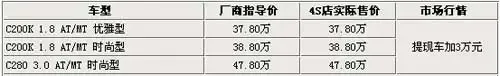 3月15日,国产奔驰C级(报价 参数 图片 论坛)轿车正式上市,售价为37.8万元(报价 参数 图片 论坛)——47.8万元。针对国产奔驰C级轿车的购买情况记者走访了北京地区一些奔驰授权经销商,在走访中记者发现目前奔驰授权经销商展厅内都能够提供展车以供消费者体验。但是对于希望购买的准车主来说,想要以厂家指导价购买现车却比较难。某4S店销售人员表示:现在国产奔驰的现车数量非常少,已经交纳定金预定的车主也很多如果想要提走现车的话须要加现金3万元,而不加现金的等待时间目前不能确定。