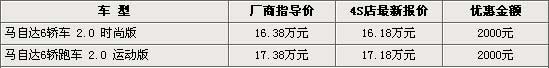马自达为进一步加大马自达6(报价 参数 图片 论坛) 车系的价格区间,增强整体竞争力而推出的两款新车——马自达6轿车时尚版与运动版轿跑车,已于2008年7月初上市销售。而这两款新车的市场情况,继不久前所出现的购车送装饰后,近日在北京地区的一汽马自达4S店内马自达6轿车时尚版与运动版轿跑车的售价出现2000元(报价 参数 图片 论坛)的现金优惠。
