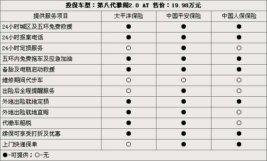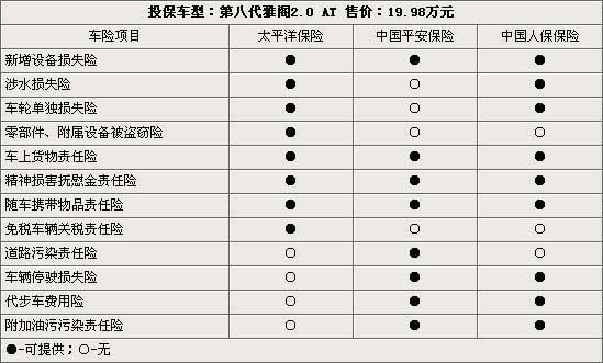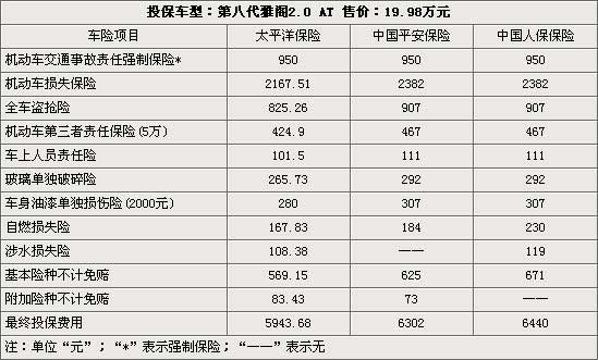 在08年推出的售价为18.18-33.98万元(报价 参数 图片 论坛)的年度新车第八代,自上市以来即受到了广大消费者的喜爱。在先后经历了加价销售、强制上保险后,随着广州对雅阁(报价 参数 图片 论坛)产能的提升,目前本田雅阁的车源已相对供应充足,消费者提现车已无需支付任何额外费用。在消费者将本田雅阁现车提到手后,如何在众多的保险公司中选择其一为爱车投保成为了首要问题。现以售价为19.98万元的本田雅阁2.0L自动挡车型为例,在北京地区的太平洋、平安、中保这三家保险公司的投保费用向大家进行一个简单的介绍 ,以便为消费者购车时提供一定的参考。
