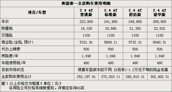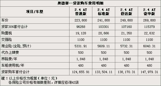 全款购买奥德赛车型,更加适合具备足够购车预算的消费者。在购车时您除了需要支付车价以外,还有几大项目时必须要支付的。例如上面表格中所列举的,车辆购置税、交通强制保险、养路费、车船使用税都是有固定额度的。