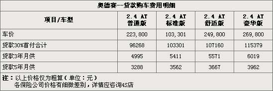贷款购车不仅可以提前享受有车的乐趣,而且也可以合理周转现有资金。不过本田目前还没有自己的金融公司,所以贷款业务还是与各大银行办理的。以售价22.38万元的奥德赛普通版车型的银行按揭为例,您最高可以享受到70%、3年的按揭(公务员、教师可达5年),这样的话购买该车的首付加上相应的购置税、保险等费用总计大致在12.5万元左右。