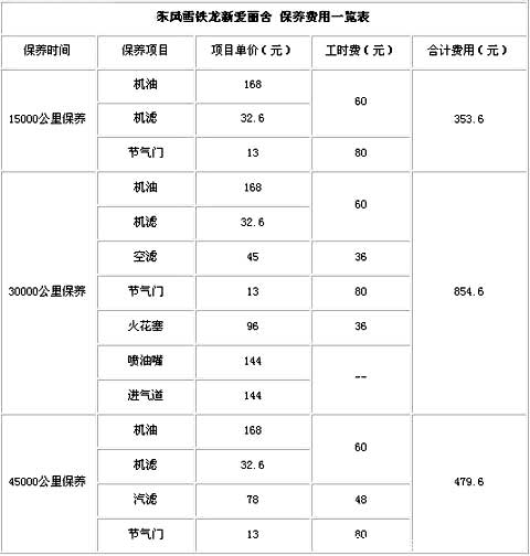 6.保养费。爱丽舍厂家规定的首保为7000-8000km,而保养周期为一年或者10000-15000km。那么我们从下表可以知道其一年的平均保养费用花费大约562.6元。