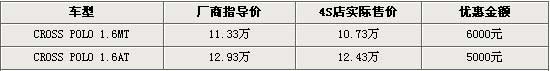 Cross Polo优惠6000 最低10.73万