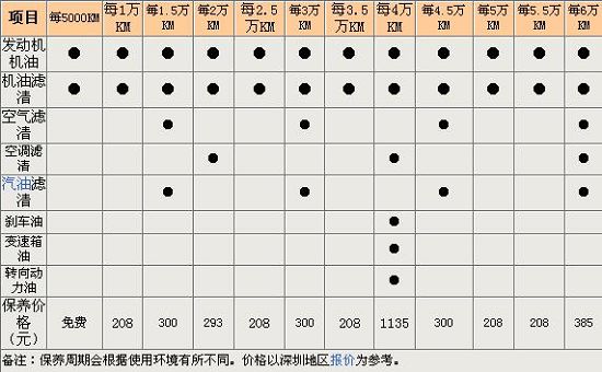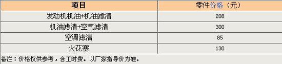 假设奇瑞A3一年跑2万公里,则需要做保养四次。前两次都为常规保养(只更换机油机滤),首保免费、二保208元(报价 参数 图片 论坛)。第三次保养(更换机油机滤+空滤+空调滤芯)为300元,如此一个周期往复。另外4万公里保养时需要更换刹车油和变速箱油和转向动力油,花费较大需1135元。