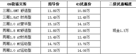 从上海的长安福特4S店了解到,新福克斯的全系现金优惠在1万元左右,或者是6000元现金加价值6000元的装潢。而二级市场则是直接让利1.3万元。