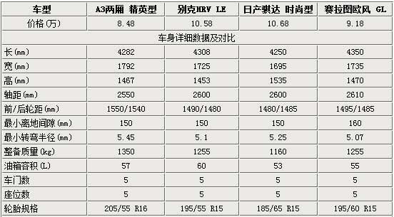 车天下 > 汽车资讯 > 汽车导购 > 奇瑞A3两厢血拼骐达/HRV/赛拉图欧风车型