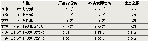 据长安铃木4S店销售人员介绍,雨燕目前现车比较充足, 1.5L雨燕车型在北京最高可给出6000(报价 参数 图片 论坛)的优惠,相比前一阵优惠金额增加500元。另外,倍受关注的双色版雨燕目前的价格仍然没有变化,并且均为订单销售,各店没有现车。若想购买需要提前预订,订金2000元,四周后提车。