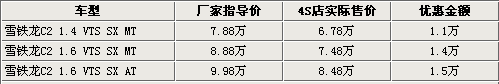 目前购买东风雪铁龙C2的消费者不仅可以享受到最高1.5万(报价 参数 图片 论坛)的现金优惠,而且还能得到商家随车赠送的部分车内装饰。据东风雪铁龙4S店销售人员表示,目前只有C2运动版VTS的车型还在销售,而且颜色比较单一,其余车型均没有现车销售。