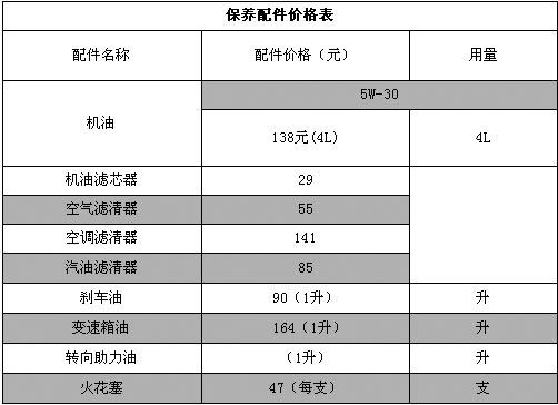 从表格中我们还可以看出,锋范车型只是在4万公里时才需要做一次大保养,材料费用总计需要666元,再加上工时费,总花费应该在千元以内,相对来说还是算比较便宜的。
