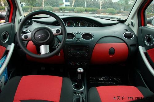 奇瑞QQ(报价 参数 图片 论坛) me采用的红黑双色内饰,整体设计主打运动路线,设计风格非常简洁但不够可爱,与比亚迪F0(报价 参数 图片 论坛)、吉利熊猫(报价 参数 图片 论坛)的设计不太相同。新车采用的中置仪表盘,设计造型较大读数清晰,同时外后视镜采用的是电动调节方式。三辐运动型方向盘手感不错,喇叭按键设计合适方便操作,同时方向盘可上下调节,方便驾驶者找到合适驾驶位置,安全驾驶车辆。