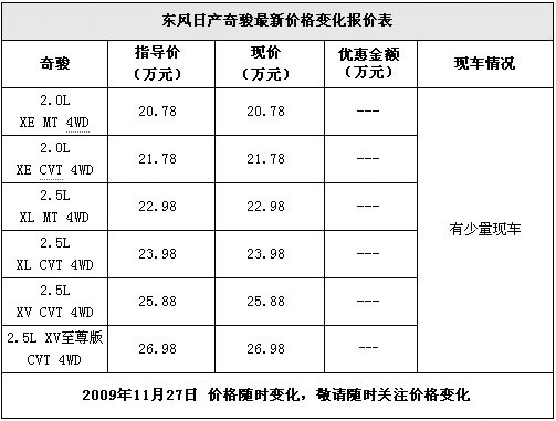 东风日产奇骏重庆少量现车 提车需预定