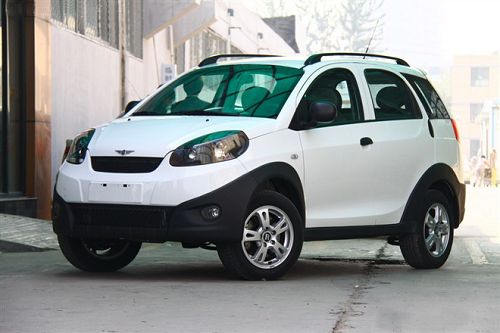 与众泰2008的硬朗风格不同,源自瑞麒M1(报价 参数 图片 论坛)的瑞麒X1看起来更像是一部略带cross味道的微轿。在外观上,瑞麒X1给人一种乖巧、可爱的感觉,尤其是前脸设计得非常圆润,乍一看似乎还有着QQ的外观设计基因;同时,由于车身采用了弧线设计,使全车散发出一种时尚动感之美。而在原型车瑞麒M1基础上加装的黑色包围和行李架,倒是强化了M1的跨界风格。