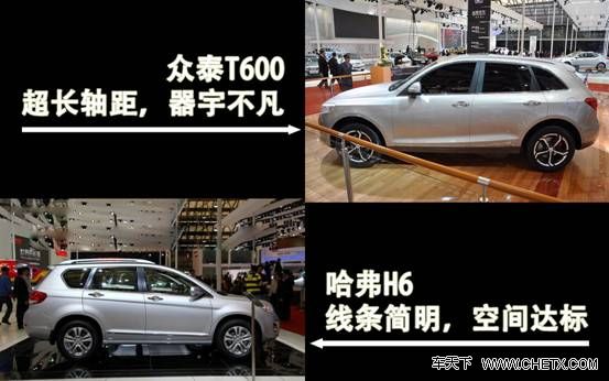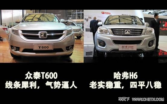 因为兼具轿车舒适性和越野车良好通过性,从去年到今年一季度,SUV一直保持了乘用车各细分市场第一位的增速。近日,自主品牌SUV聚焦上海车展,涌现出了比亚迪S6(报价 参数 图片 论坛)、帝豪(报价 参数 图片 论坛)EX7、华泰宝利格(报价 参数 图片 论坛)、荣威W5(报价 参数 图片 论坛)等一系列SUV新车型,其中,同样定位于B级城市SUV的众泰T600(报价 参数 图片 论坛)(产品代号B11,以下省略)和哈弗H6(报价 参数 图片 论坛)最为耀眼夺目,在此,就拿这两款新车进行全面对比,看看究竟是谁更加绅士,更加适合奔跑于城市的道路上。