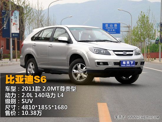 同样是第一次生产SUV的厂家比亚迪来说,比亚迪S6(报价 参数 图片 论坛)的产品线同样不够丰富,和力帆X60孤军奋战相比,比亚迪S6也仅仅只有三款车型可供选择,相对于比亚迪F3(报价 参数 图片 论坛)、F6等其它车型来说,S6绝对属于保守派。虽然只提供了三款车型,好在还能选择一下(不像力帆X60都不给编辑选择的机会),今天编辑选择的是比亚迪S6 2011款 2.0MT尊贵型,厂商指导价为10.38万元