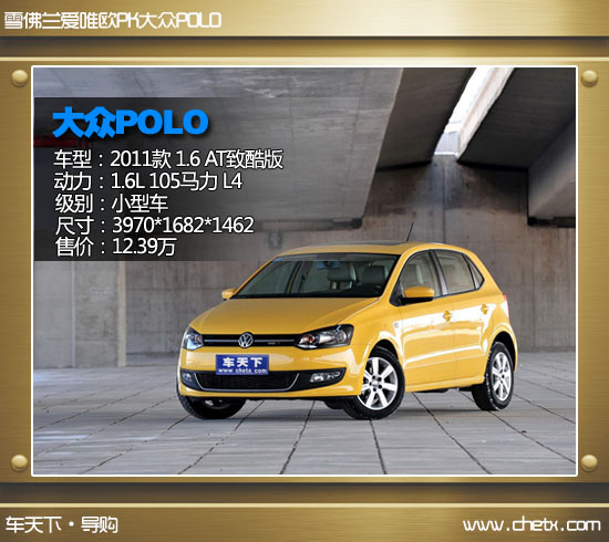 POLO是大众旗下一款经典的小型车,其获奖无数,销量显赫,目前在售的是第五代POLO。爱唯欧是基于通用全新Gamma II平台下研发的小型车。今天的题目是挑战王者的地位,那么肯定派出双方最有实力的车型,分别为两款车的最高配车型,将两款车最强大的一面展现出来。POLO的高配车型为2011款 1.6 AT致酷版,售价12.39万;爱唯欧高配车型为2011款 两厢 1.6 AT SX,售价11.18万。