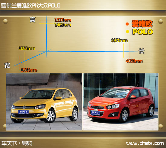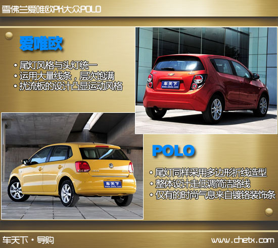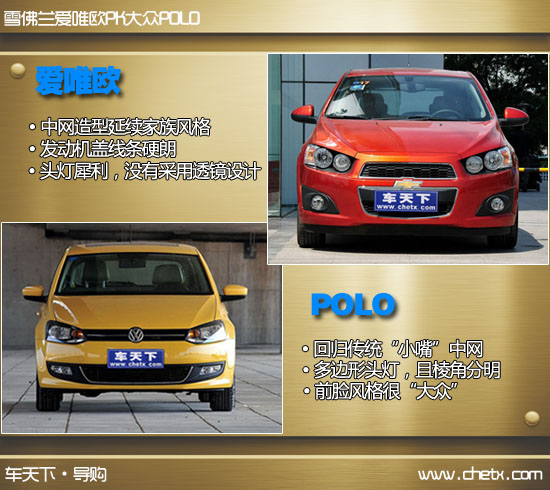 提到小型车相信很多人首先想到的就是大众POLO(报价 参数 图片 论坛)。的确,POLO是个非常经典的车型,在世界上都有非常好的销量,在中国也不例外。在其它车型火热竞争的时候,小型车市场的火药味似乎并不浓厚,或许在小型车市场中能与POLO直接竞争的车型并不多,这也使POLO一直处于小型车中“王者”的地位。而很多厂商都对这个“王者”虎视眈眈,雪佛兰就是其中一员。在紧凑型车中雪佛兰科鲁兹(报价 参数 图片 论坛)的优秀表现,就让大众多款车型倍感压力。而5月20日上市的爱唯欧(报价 参数 图片 论坛)又将这种压力蔓延到了小型车市场中。今天雪佛兰全新小车爱唯欧将挑战POLO的“王者”地位,而爱唯欧的挑战能否成功呢?下面编辑就为大家带来这两款车的详细对比。