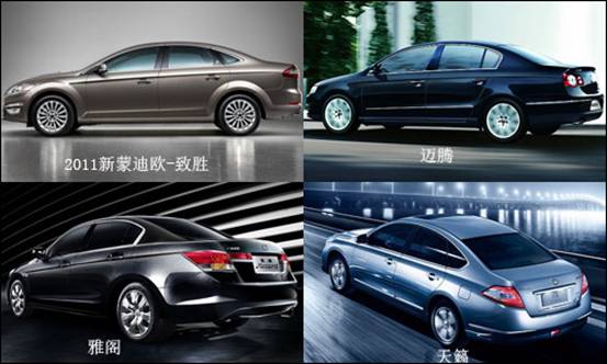 随着国内油价的持续上涨,作为准车主的您一定会发现身边有车的朋友油钱花销是越来越大了,而油钱恰恰是用车花销较大的一笔成本,国内油价涨多跌少,就不用指望油价下跌了,所以选择一款省油的轿车无疑是明智之选,今天我们将为您推荐几款用车成本较低的省油中高级轿车——2011新蒙迪欧-致胜(报价 参数 图片 论坛)、迈腾(报价 参数 图片 论坛)、雅阁(报价 参数 图片 论坛)、天籁(报价 参数 图片 论坛)。